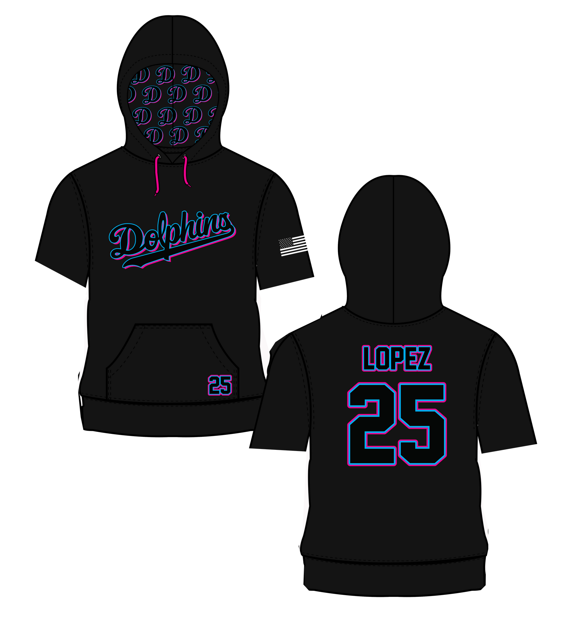 Dolphins - Shortsleeve Sublimated Hoodie - Black (3 week turn time)